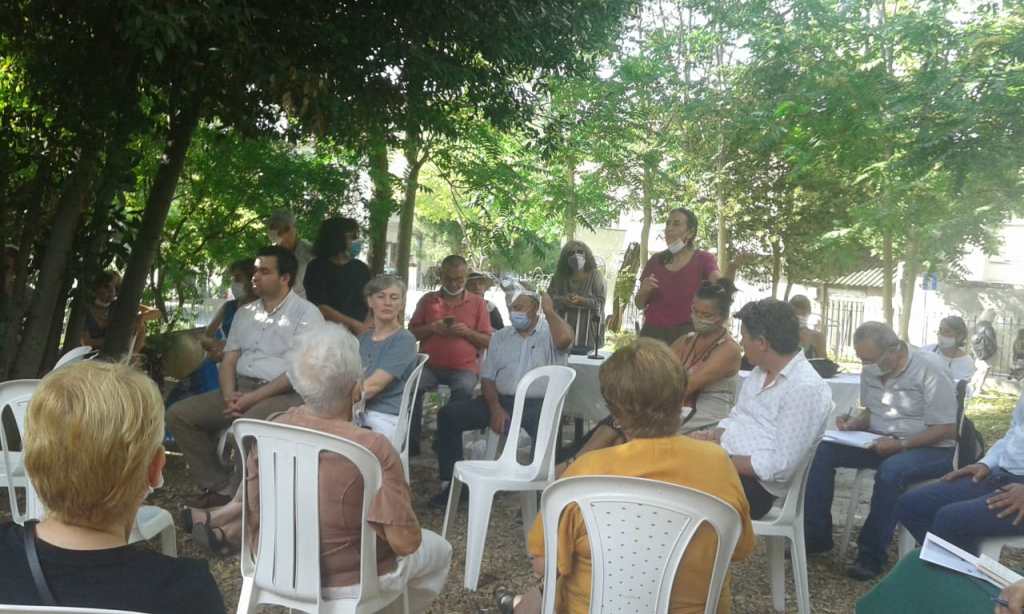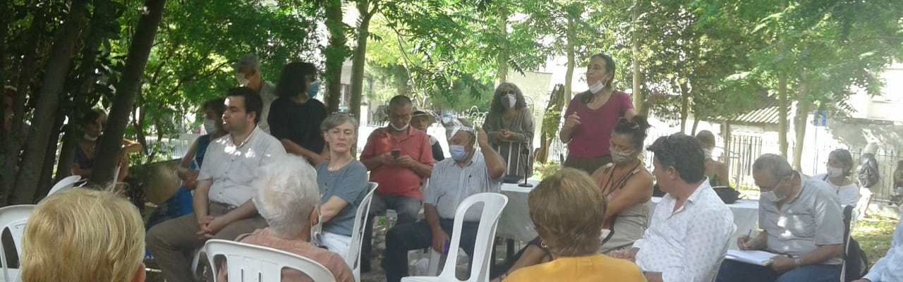 Toplantı Büyükada’da Çelik Gülersoy Kültür Merkezi bahçesinde, açık havada ve sosyal mesafe gözetilerek yapıldı. Katılımcıların önemli bir bölümü maskelerini taktılar.