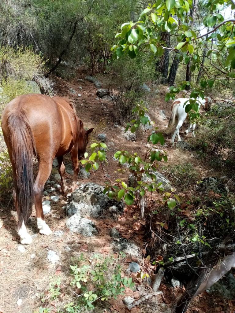 Atlar ahırda kapalı değiller, üç buçuk dönüm içinde serbestçe geziyorlar. “Ben onlara saatinde otlarını vermesem de açlıktan ölmezler ama yine de sorumlu olduğum ve bana en çok ihtiyaç duyan canlılar onlar. Emek olarak yorucu. Kapının önündeki gübreleri temizleyerek başlayan gün, yine aynı şekilde bitiyor” diye anlatıyor.