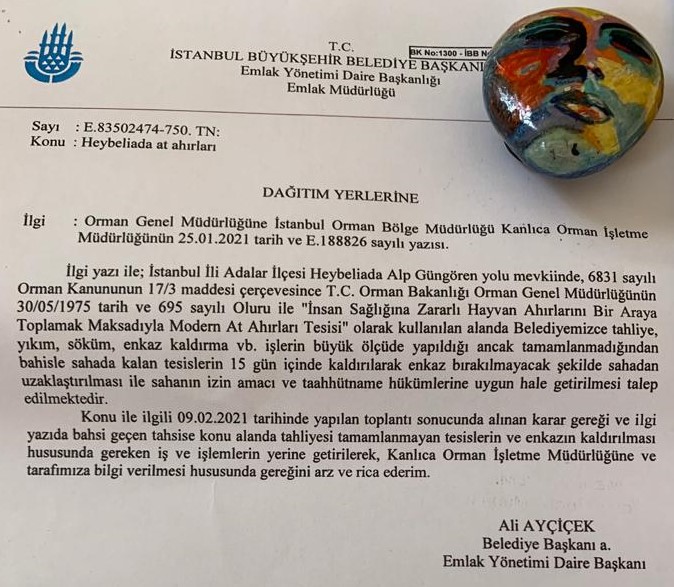 Orman İdaresi İBB’ye Burgazada ve Heybeliada’daki ahır bölgelerinde ahır yapması, bölgede İBB tarafından yapılmamış olan yapıların yıkılıp molozların kaldırılması için yazı gönderdi. İBB bölgede ahır yapmazsa kira sözleşmesinin şartlarını yerine getirmediğinden dolayı araziyi kaybedecek.