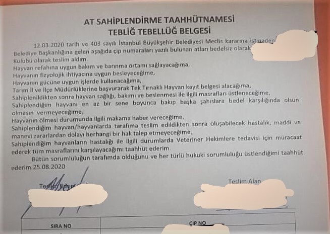Titizlikle hazırlandığı iddia edilen “Atları Sahiplenme Şartları” ise, taleplerimize rağmen, İBB tarafından hiçbir zaman açıklanmadı. Biz bu protokole Kasım 2020’de alıcılar üzerinden ulaştık ve Aralık 2020’deki Adaların Atları 1. Yıl Raporu’nda yer verdik.