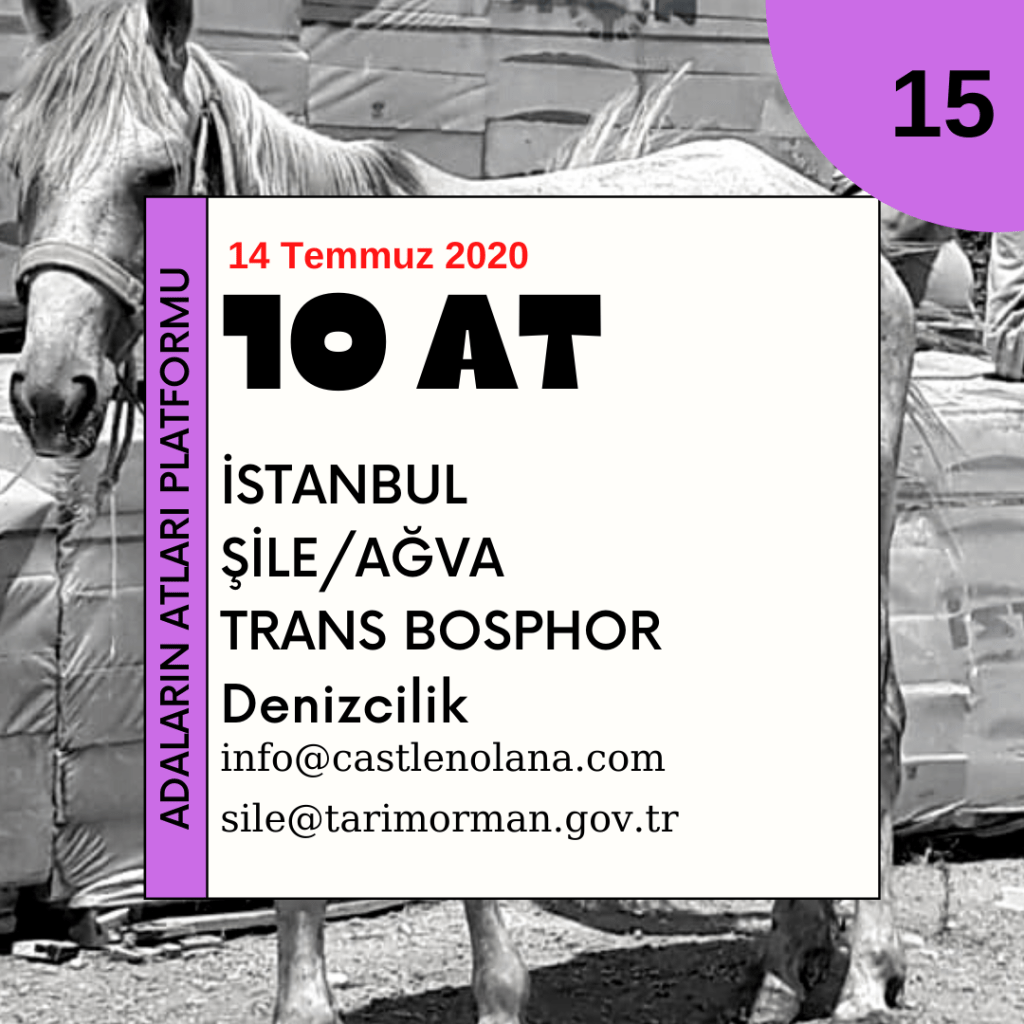 12 Ağustos 2020 tarihinde İstanbul Şile’nin iki ayrı muhtarlığına toplam beş at gönderilmişti. 3 at Şile Karamandere Muhtarlığına, 2 at ise Şile Ovacık Muhtarlığına gitmişti. Ayrıca merkezi İstanbul’da olan Transbosphor Denizcilik ismindeki şirkete de 14 Temmuz 2020 tarihinde 10 at gönderilmiş, bu atlar şirketin resmi adresine değil de Ağva’ya sevkedilmişti. Kısa bir süre sonra basında yer alan bir haberde “Büyükada’daki atlardan 10 tanesi, Ağva’da Kaptan Mustafa Can’a ait Castle Nolana Otel tarafından sahiplenildi. “ deniliyordu. Aynı haber “Daha önce 7 ata ev sahipliği yapan Ağva’daki Castle Nolana Otel atlardan 10’unu sahiplendi. Aynı zamanda Transbosphor Denizciliğin de kurucusu olan, otel sahibi Kaptan Mustafa Can, kendi atlarına olduğu gibi Adalar’dan gelen her ata da ayrı ahır inşa etti. Veteriner gözetimine alınan atlar bundan sonraki yaşamlarına Ağva’da insanlarla iç içe devam edecekler. “ cümleleriyle devam ediyordu.