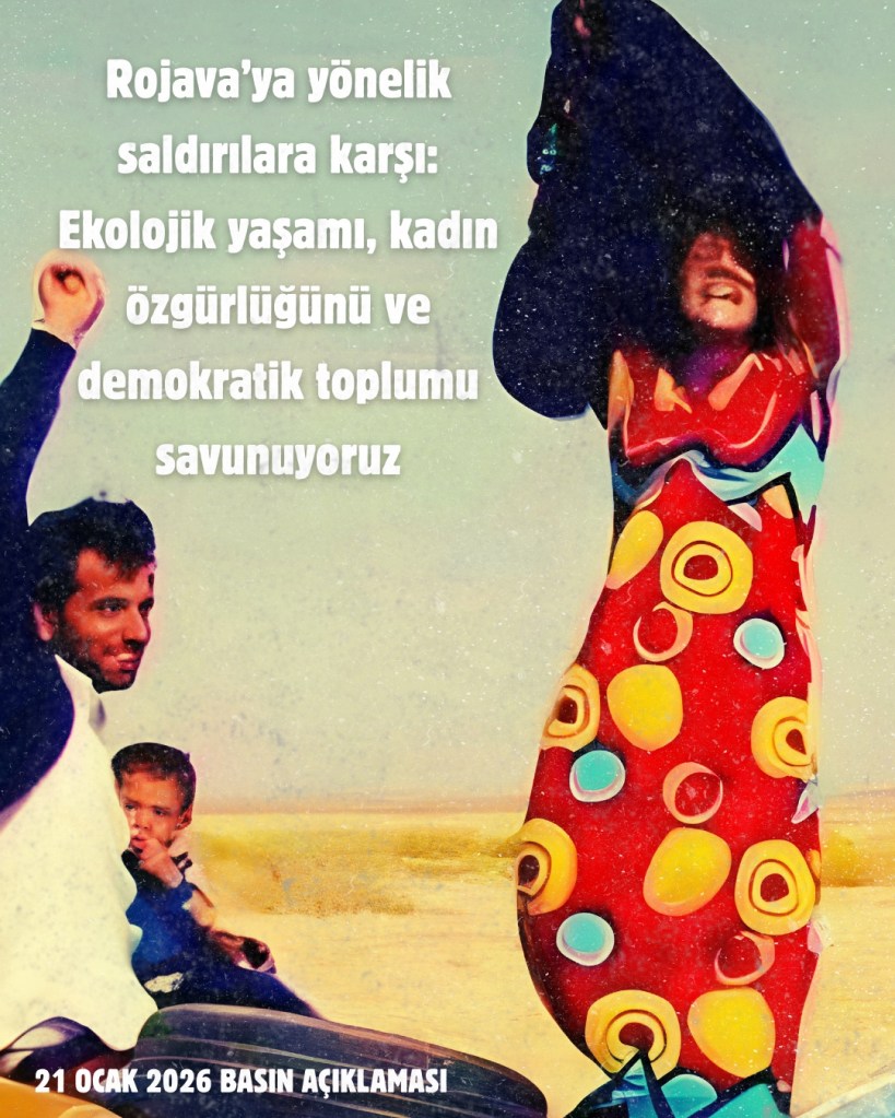 Aşağıda imzası bulunan bizler, Rojava’daki ekolojik yaşamı, kadın özgürlüğünü ve demokratik toplum iradesini savunuyor; saldırıların derhal durdurulmasını, sivillerin korunmasını ve barışçıl-siyasi çözüm kanallarının işletilmesini talep ediyoruz.